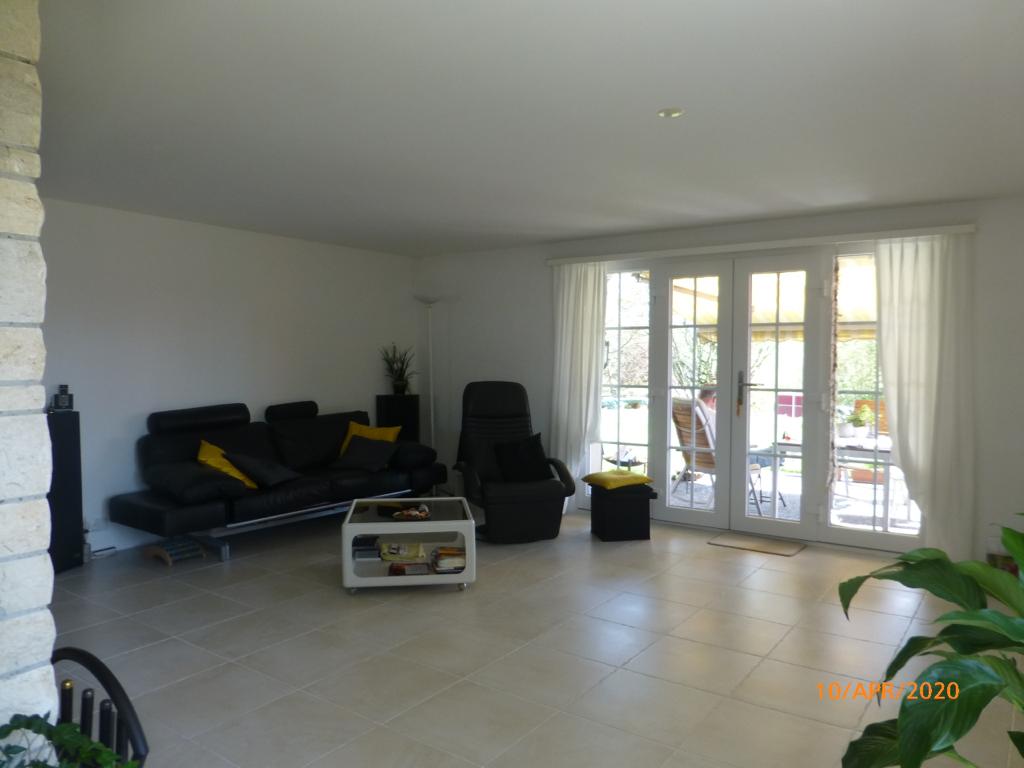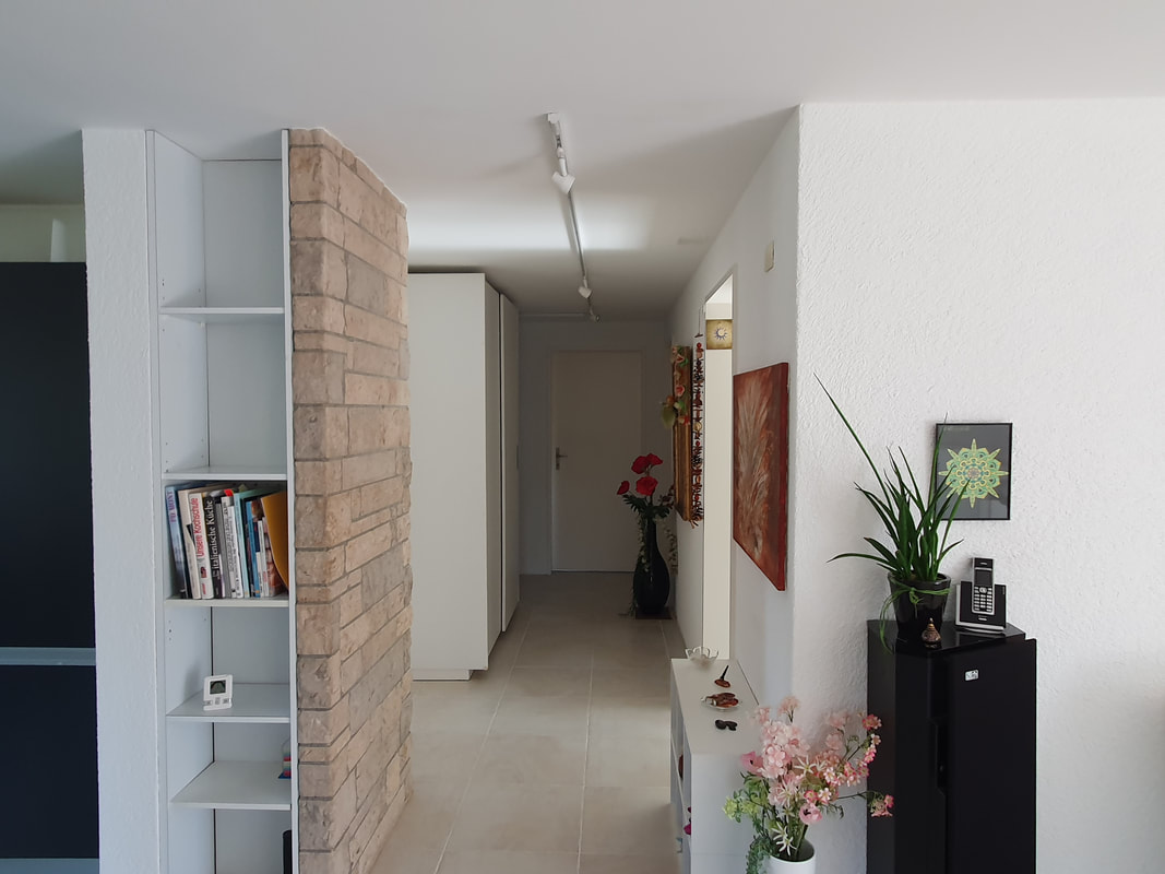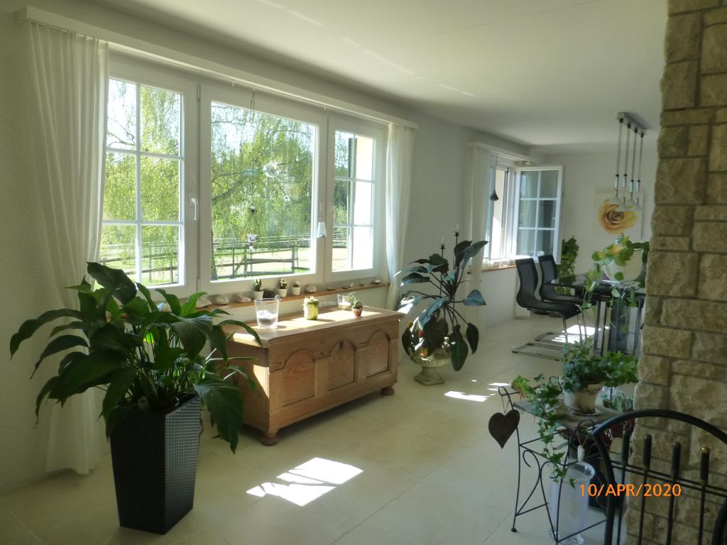 Ich vermiete oder verkaufe meine 4.5-Zimmerparterrewohnung im 4-Parteienhaus. Angrenzend zum Pferdeoffenstall. 4.5 Zimmer mit 135m2 Wohnfläche. Verfügbar ab 1.2.2026. Verkaufspreis: CHF 850`000.00 im Verkaufspreis ist eine Einzelgarage und ein Aussenparkplatz inbegriffen. Mietpreis: CHF 1950.00 zuzüglich CHF 350.Nebenkosten monatlich. Im Mietpreis ist 1 Aussenparkplatz inbegriffen. Die attraktive Wohnung befindet sich im Erdgeschoss eines 4-Parteienhauses in ländlicher und ruhiger Umgebung. Mit einer Wohnfläche von 134.65m2 bietet die Wohnung viel Platz und Komfort. Die Wohnung wurde totalsaniert und verfügt über 3-fach verglaste Fenster, helle Steinplattenböden sowie Bodenheizung. Raumaufteilung: 3Schlafzimmer, ein grosses gemütliches Wohnzimmer mit rustikalem Cheminée sowie eine offene Küche mit Kochinsel an angrenzendem Essbereich. Nasszellen: 1 Dusche mit Dusch-WC und Einzellavabo, 1 Dusche mit Normal-WC und Doppellavabo. An der Südfassade der Wohnung befindet sich ein grosser gedeckter Sitzplatz mit anschliessender grosser Rasenfläche (ca. 800m2). Optional besteht die Möglichkeit, nach Absprache im angrenzenden Pferdeoffenstall bis zu zwei Pferde einzustellen.